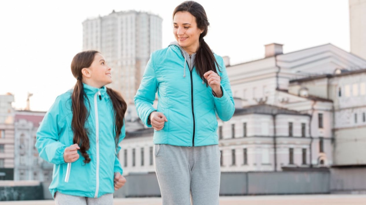 Ilustrasi Ibu dan anak berolahraga